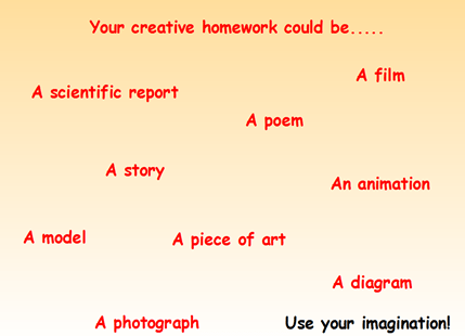What will you produce for your Creative Homework? Below are some ideas to get you started.